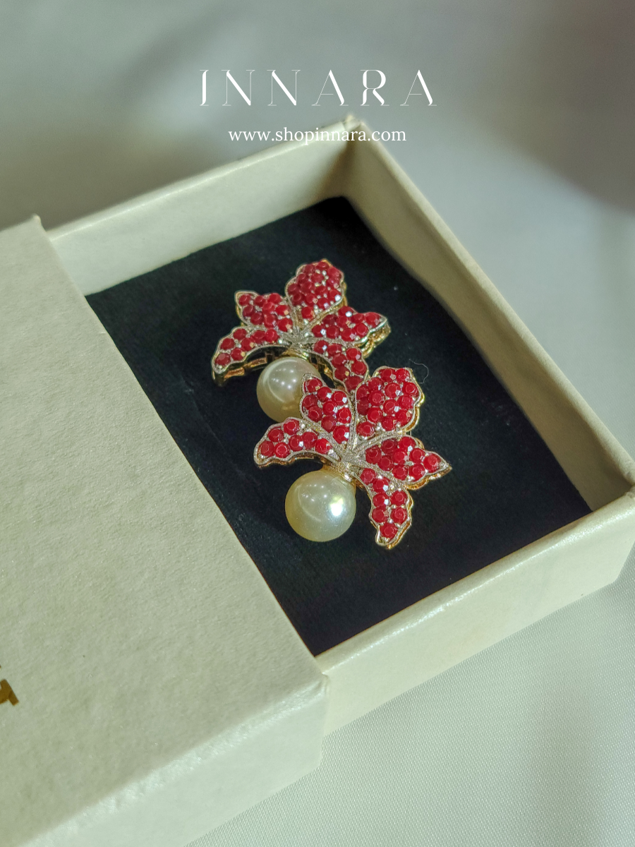 Add a touch of nature-inspired elegance to your look with these stunning leaf-shaped earrings, adorned with vibrant red or green stones and finished with a luminous pearl drop. Perfect for festive occasions or graceful everyday wear.